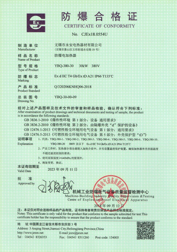 防爆证-箱体防爆电加热器